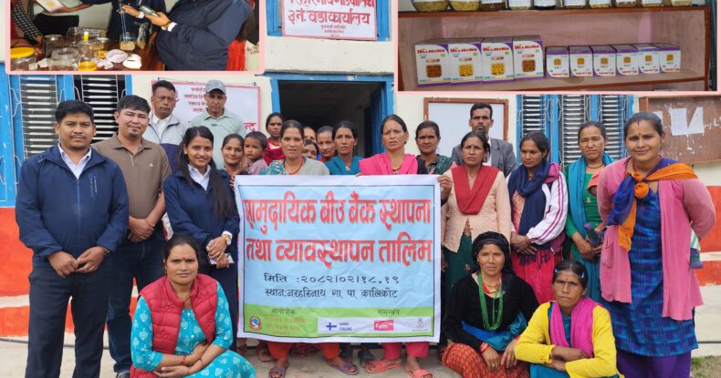 १९,जेठ,२०८२ कालिकोट। जिल्लाको नरहरिनाथ गाउँपालिका कृषि विकास शाखाको आयोजना र सहयोगी हातहरुको समुह (सहास) नेपाल पाइला परियोजना कालिकोटको समन्वयमा २ दिने सामुदायिक बिउ बैंक स्थापना तथा ब्यबस्थापन तालीम सम्पन्न भएको छ।