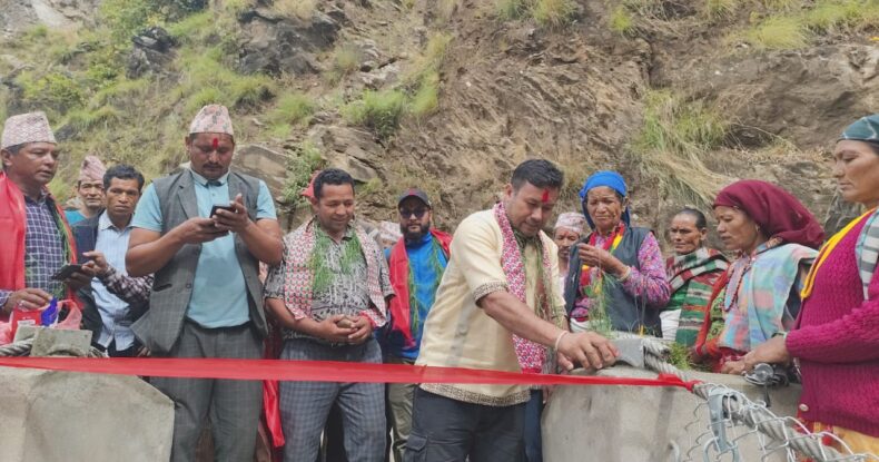 कालिकोट । जिल्लाको नरहरिनाथ गाउँपालिका–१ कोटवाडा र वडा नं. ६, ८ र ९ का बस्तीहरूलाई जोड्ने बहुप्रतिक्षित रहगाड पुल को उद्घाटन कार्यक्रम भव्य रुपमा सम्पन्न भएको छ। गाउँपालिकाका उपाध्यक्ष कमल कुमार शाहले औपचारिक रूपमा उद्घाटन गर्दै पुल निर्माणमा योगदान पुर्याउने उपभोक्ता समितिलाई सम्मान समेत गरेका छन ।