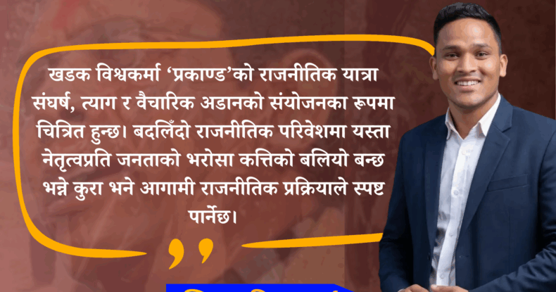 समग्रमा, खडक विश्वकर्मा ‘प्रकाण्ड’को राजनीतिक यात्रा संघर्ष, त्याग र वैचारिक अडानको संयोजनका रूपमा चित्रित हुन्छ। बदलिँदो राजनीतिक परिवेशमा यस्ता नेतृत्वप्रति जनताको भरोसा कत्तिको बलियो बन्छ भन्ने कुरा भने आगामी राजनीतिक प्रक्रियाले स्पष्ट पार्नेछ।